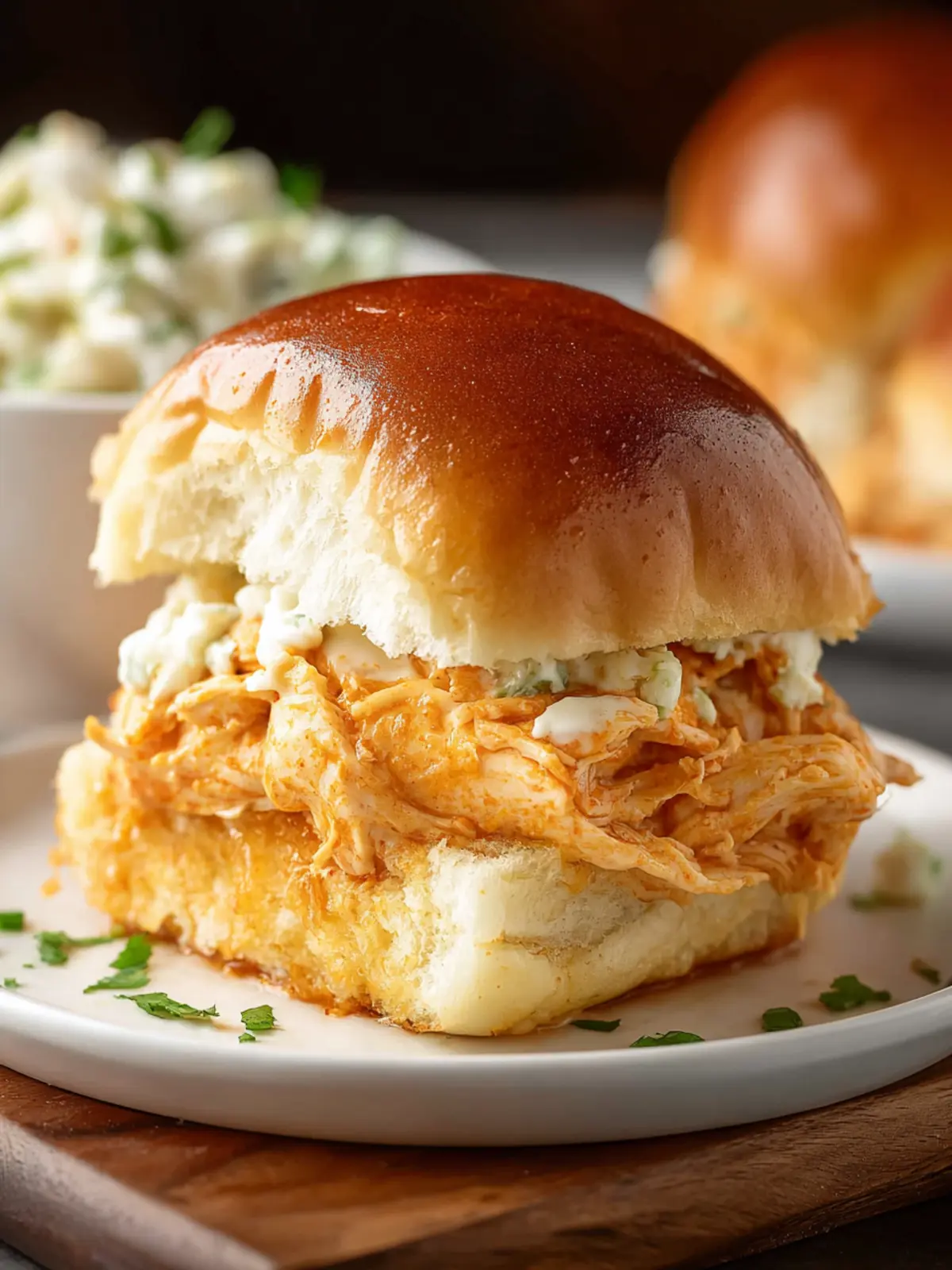 Buns: Choose soft slider buns that can hold up to the saucy filling without falling apart. Brioche or potato buns work wonderfully, adding a subtle sweetness that complements the spicy chicken.