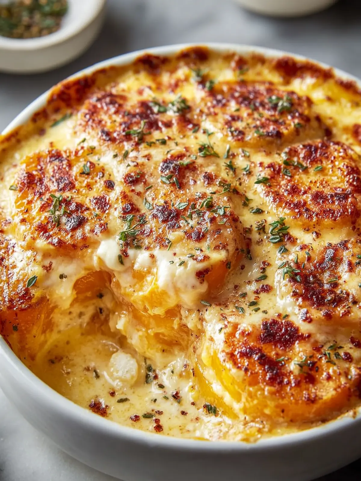 A delicious creamy butternut squash gratin recipe that is perfect for any occasion.