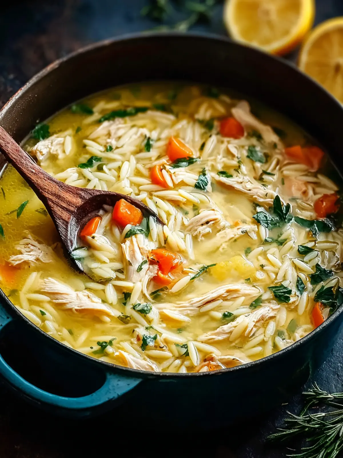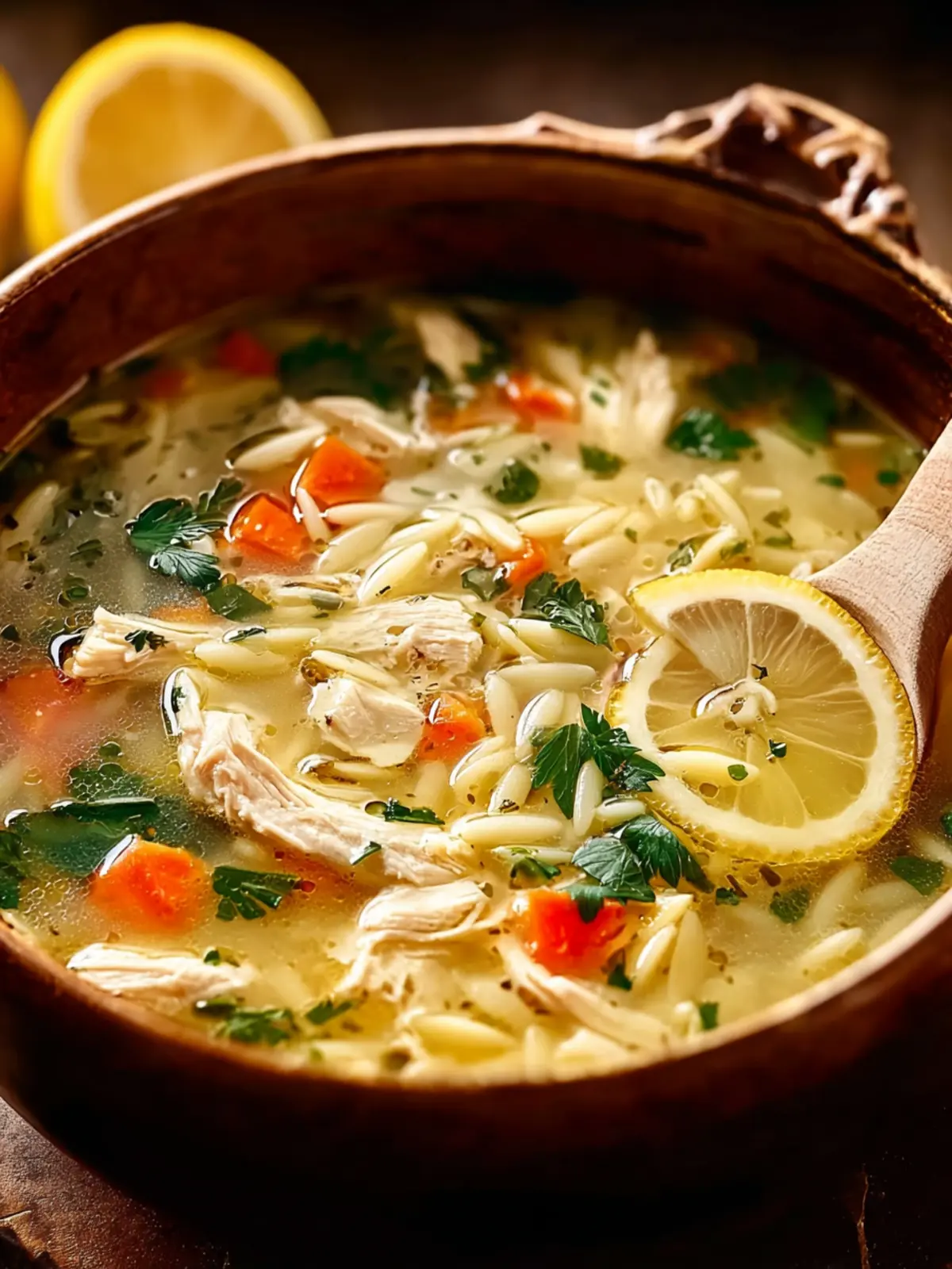 A comforting and flavorful lemon chicken orzo soup, perfect for a cozy meal.