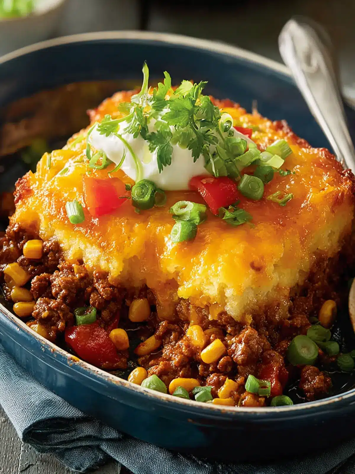 A delicious and hearty Taco Cornbread Casserole that combines seasoned ground beef with a cheesy cornbread topping. Perfect for a family meal!