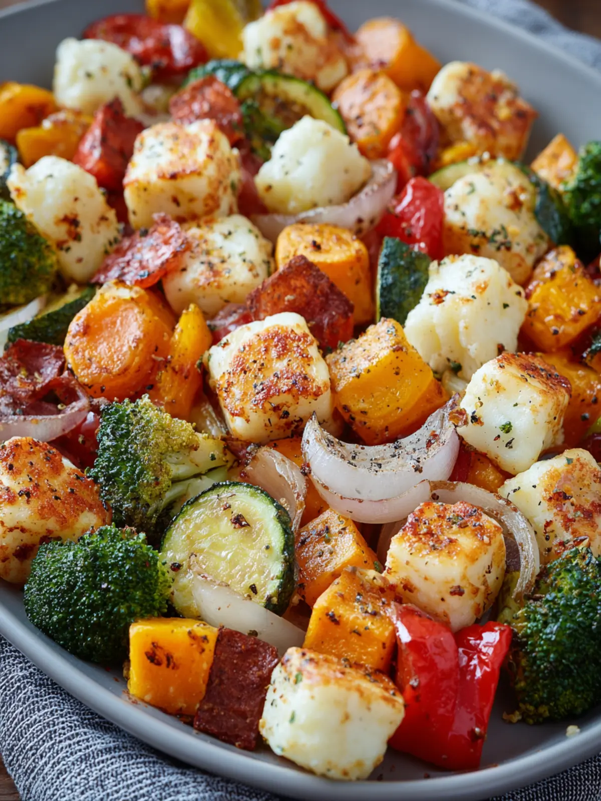 Olive Oil: A drizzle of high-quality olive oil not only adds richness but also helps in achieving that perfect roasted finish. It enhances the flavors of both the halloumi and the vegetables.