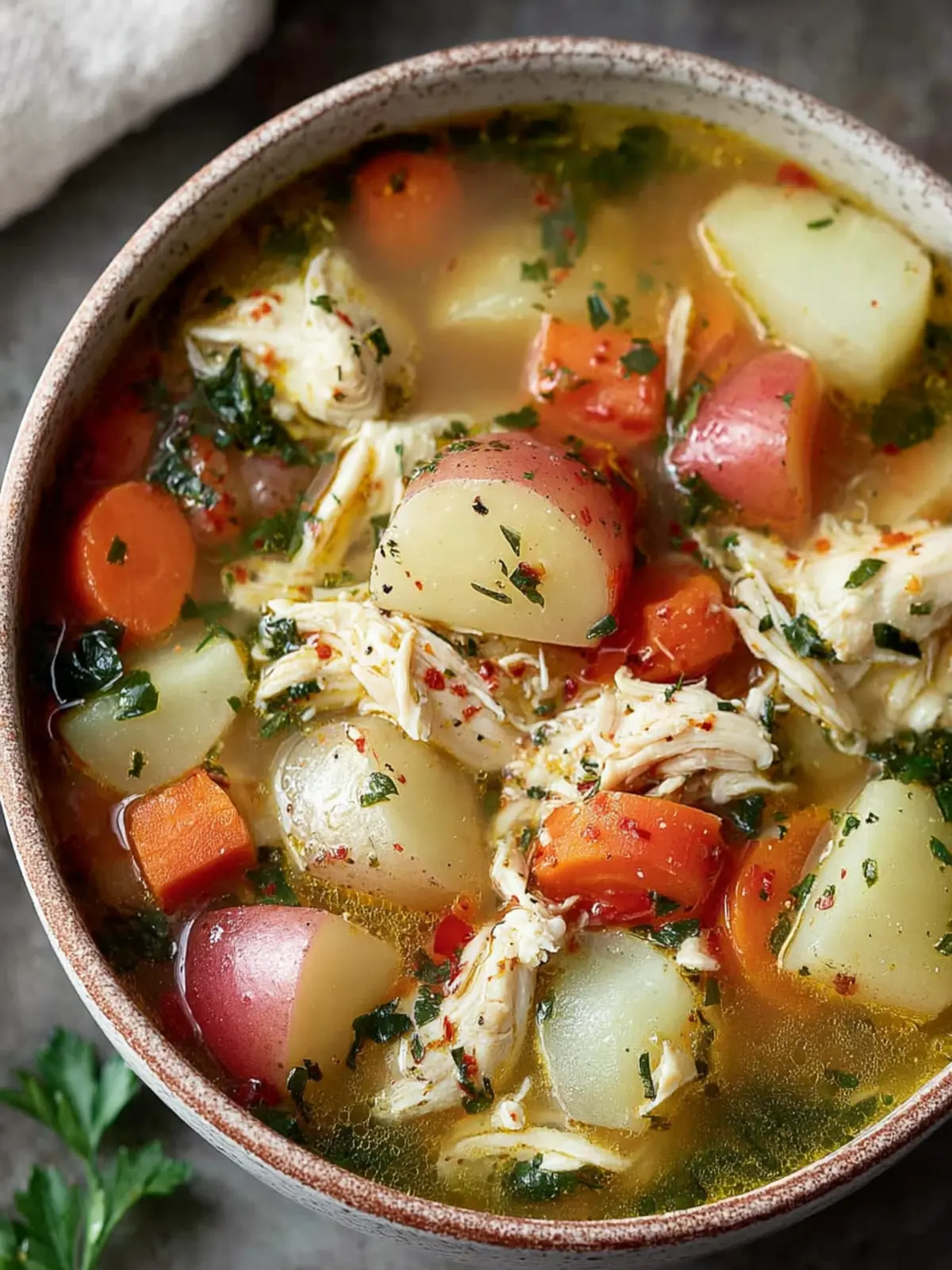 The key to this nutritious chicken soup is its balance of flavors and health benefits. Each serving is packed with lean protein from the chicken, which helps to repair muscles and keep you energized. The potatoes not only add heartiness but are also a fantastic source of vitamins C and B6. Plus, the colorful vegetables contribute essential nutrients and antioxidants that can boost your immune system.