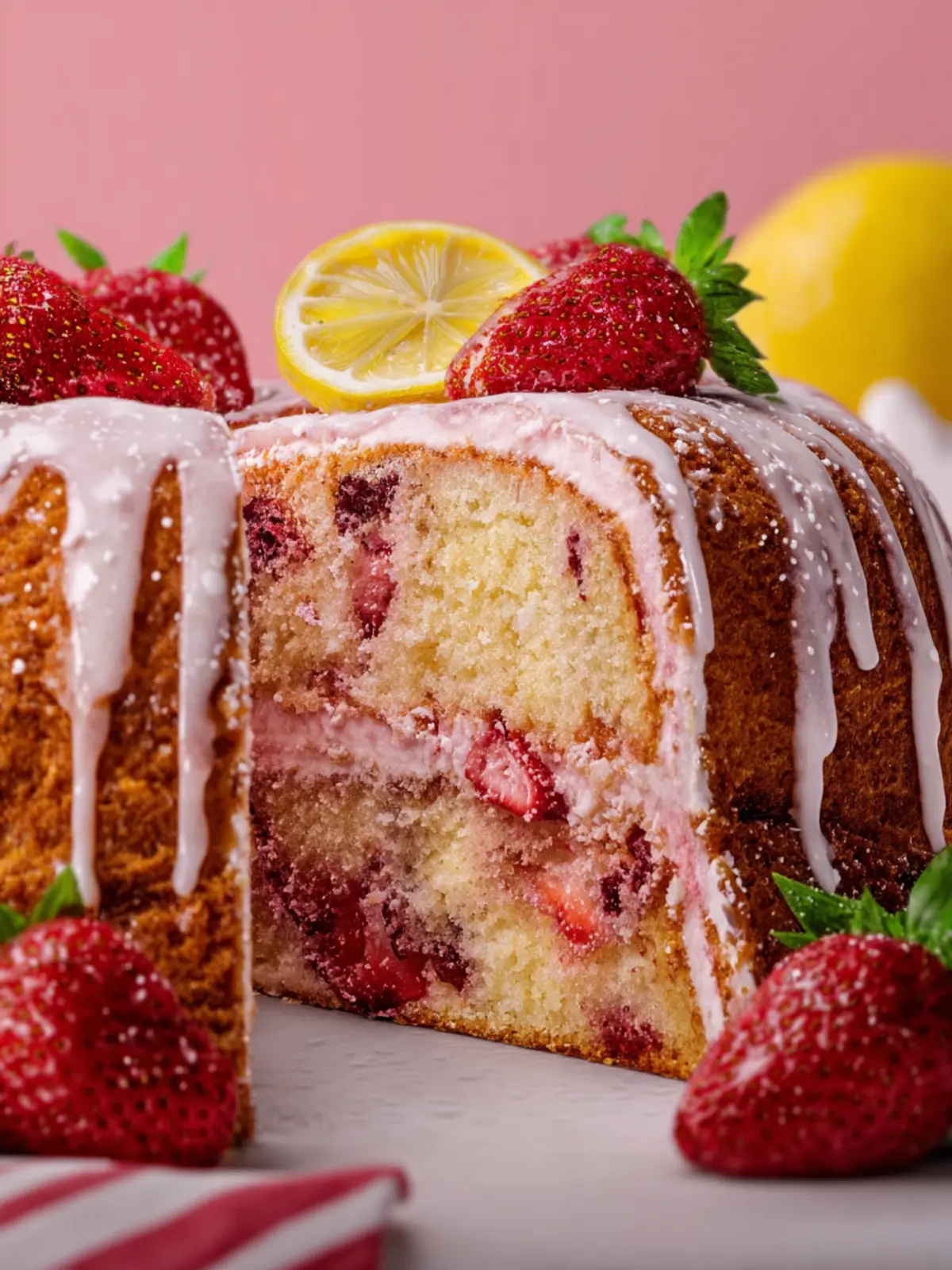 This Strawberry Lemon Bundt Cake is a delightful dessert bursting with fresh strawberries and zesty lemon flavor.
